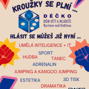 15.10.2025 Ještě před oficiálním spuštěním kroužků proběhla v Déčku ukázková akce nazvaná "Otevřené Déčko aneb ZKUS DÉČKO". V pátek 26. září si tak měli návštěvníci možnost vyzkoušet rozmanitou nabídku kroužků - zkusili si práci s keramikou, prověřili rytmus v tanečních kroužcích, seznámili se s obyvateli chovatelských kroužků, nahlédli pod ruce 3D tisku, naučili se něco z mysliveckého kroužku a orientačn...