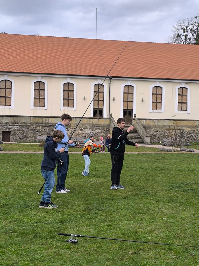 V tomto školním roce mají chlapci z rybářských kroužků 100% úspěšnost ve složení testů na povolenky. Tento týden se už pustili do praktických příprav – nahazování, aby již příští pondělí mohli poprvé vyrazit na rybník. Kromě zúročení nabitých zkušeností z teoretické části kroužku budou pilně trénovat na dětské závody v rybaření, na které vás již zanedlouho pozveme..